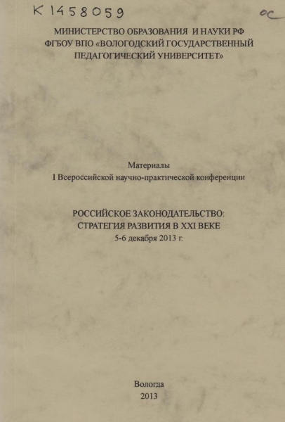 Человек, его права и свободы: опыт конституционного строительства : сборник материалов Международной научно-практической конференции, посвященной 20-летию со дня принятия Конституции Российской Федерации, [г. Вологда, 6 декабря 2013 г. / редкол.: Л. И. Антонова и др.]. - Вологда : Древности Севера, 2013. - 336 с. : цв. портр. - В надзаг.: Правительство Вологод. обл., Законодат. Собр. Вологод. обл., Избират. комис. Вологод. обл., Вологод. обл. суд, Сев.-Зап. ин-т (фил.) Ун-та им. О. Е. Кутафина (МГЮА), Общ. палата Вологод. обл., Вологод. регион. отд-ние общерос. обществ. орг. «Ассоц. юристов России». - ISBN 978-5-93061-084-0