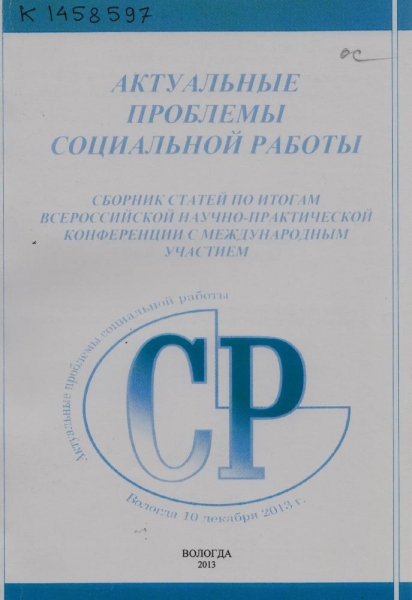 Актуальные проблемы социальной работы : сборник статей по итогам Всероссийской научно-практической конференции с международным участием (10 декабря 2013 г.) / М-во образования и науки РФ, ФГБОУ «Вологод. гос. пед. ун-т», Фак. соц. работы, педагогики и психологии, Каф. соц. работы и соц. педагогики; [редкол.: Маркевич О. А., Макеева И. А.]. - Вологда : ВГПУ, 2013. - 459 с. : ил., табл. - ISBN 978-5-87822-538-0