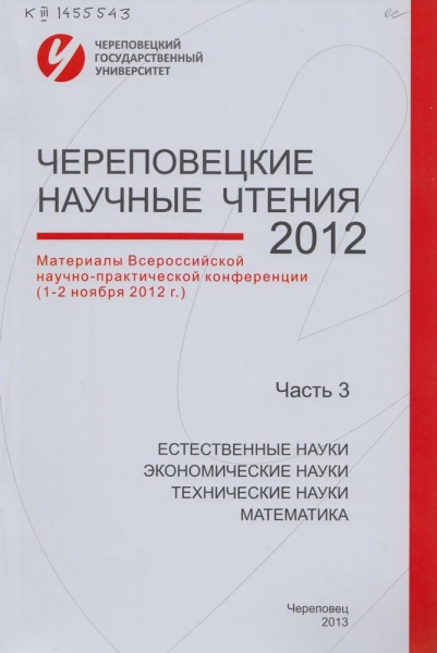 Череповецкие научные чтения - 2012. [В 3 ч.] : материалы Всероссийской научно-практической конференции (7-8 ноября 2012 г.). Ч. 3. Естественные, экономические, технические науки и математика / [редкол.: Н. П. Павлова (отв. ред.) и др.]. - Череповец : ЧГУ, 2013. - 278 с. : ил., табл. - ISBN 978-5-85341-537-9. - ISBN 978-5-85341-534-8