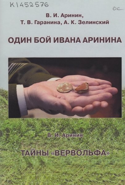 Аринин В. И. Один бой Ивана Аринина / В. И. Аринин, Т. В. Гаранина, А. К. Зелинский. Тайны «Вервольфа» / В. И. Аринин. - Вологда : Легия, 2013. - 58, [1] с., [4] л. цв. ил., портр. - ISBN 978-5-89791-122-6