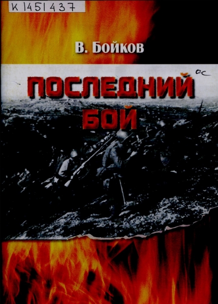 Бойков В. Л. Последний бой : по рассказам отца : стихи / В. Бойков. - Вологда : Сад-огород, 2013. - 41, [2] с. - ISBN 978-5-905713-33-0