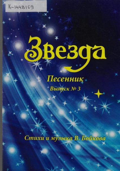Бойков В. Л. Звезда [Ноты] : песенник. Вып. 3. / стихи и музыка В. Бойкова. - Вологда : Сад-огород, 2013. - 30, [1] с. : ноты. - ISBN 979-0-9003115-0-4