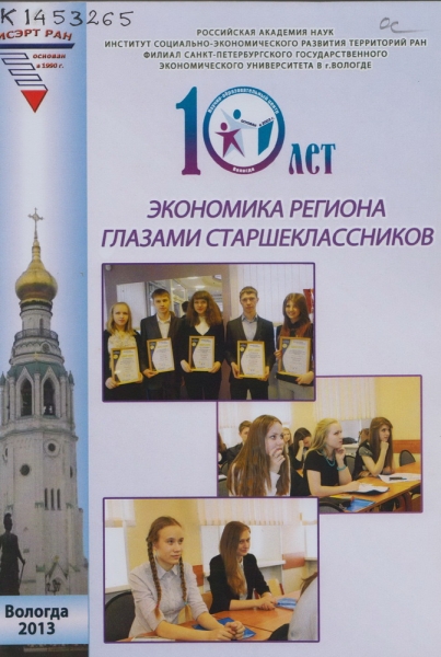 Экономика региона глазами старшеклассников : сборник конкурсных работ. Вып. 10. / Рос. акад. наук, Ин-т соц.-экон. развития территорий РАН, Фил. С.-Петерб. гос. экон. ун-та в г. Вологде ; [редкол. : В. А. Ильин, А. А. Шабунова, В. И. Попова]. - Вологда : ИСЭРТ РАН, 2013. - 133 с. : ил., портр., табл. - ISBN 978-5-93299-230-2