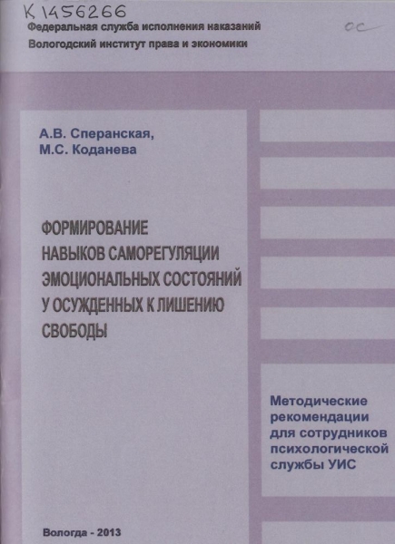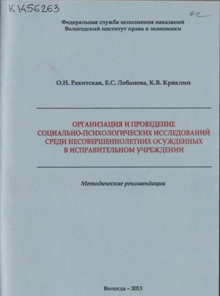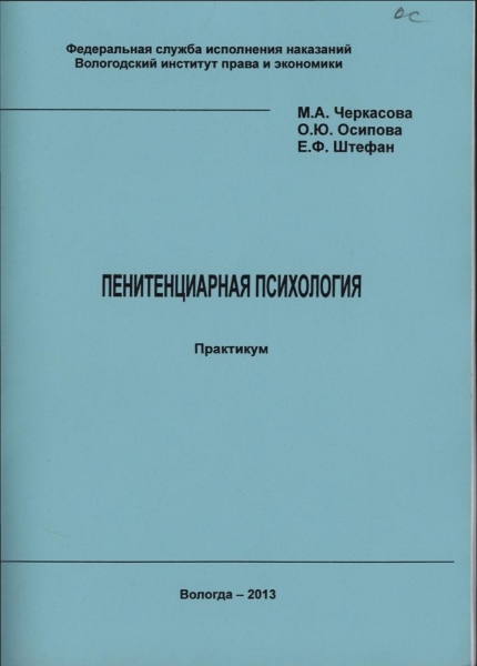Черкасова М. А. Пенитенциарная психология : практикум / М. А. Черкасова, О. Ю. Осипова, Е. Ф. Штефан ; Федер. служба исполн. наказаний, Вологод. ин-т права и экономики. - Вологда : ВИПЭ ФСИН России, 2013. - 54 с. : ил., табл. - ISBN 978-5-94991-271-3