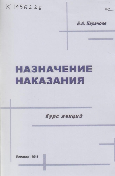 Баранова Е.А. Назначение наказания : курс лекций / Е. А. Баранова ; Федер. служба исполн. наказаний, Вологод. ин-т права и экономики. - Вологда : ВИПЭ ФСИН России, 2013. - 77 с. - ISBN 978-5-94991-252-2
