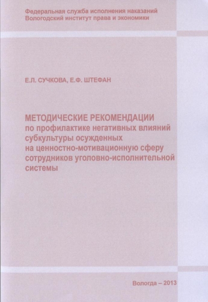 Штефан Е. Ф. Агрессивное поведение осужденных мужского пола с длительными сроками лишения свободы и пути его коррекции : монография / Е. Ф. Штефан ; Федер. служба исполн. наказаний, Вологод. ин-т права и экономики. - Вологда : ВИПЭ ФСИН России, 2013. - 179 с. : ил., табл. - ISBN 978-5-94991-234-8