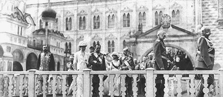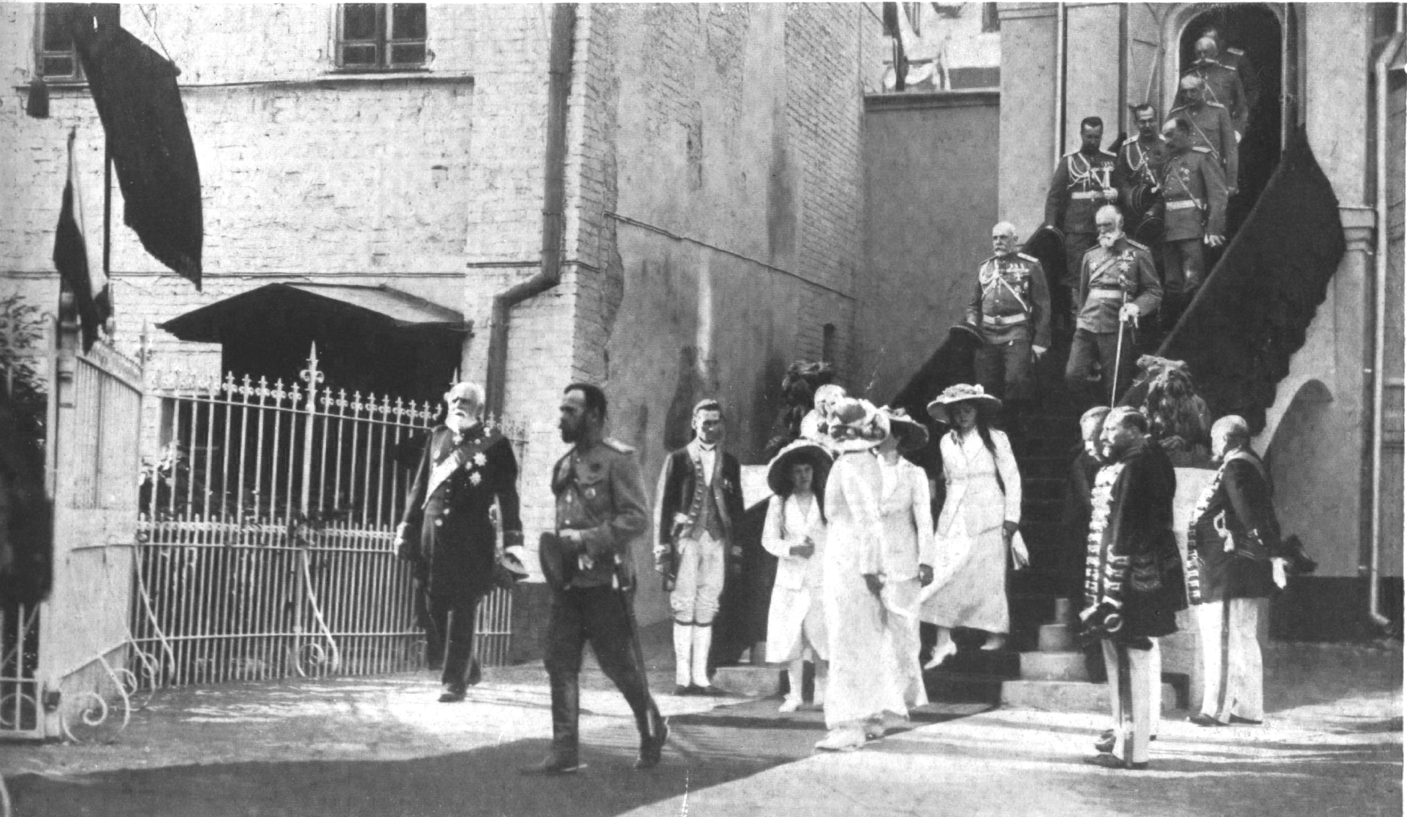 К пребыванию Их Императорских величеств в Москве. Их Императорские Величества Государь Император и Государыня Императрица Александра Федоровна шествуют в Успенский Собор.