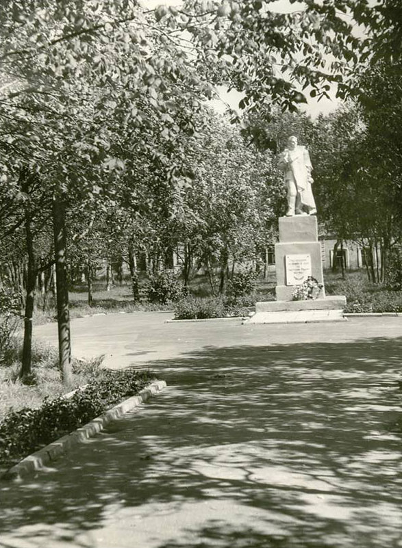 Первоначально памятник был установлен у здания сельского совета. На данный момент этого здания нет, но остался парк, в котором продолжает стоять памятник (фото №1).