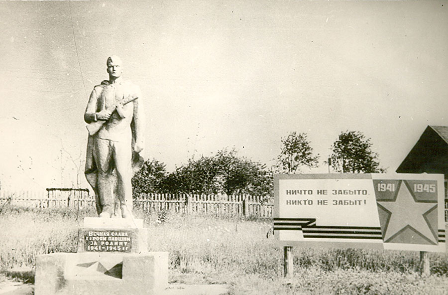 На пьедестале на плите высечены слова: «Вечная слава землякам, павшим за Родину. 1941–1945 гг.».