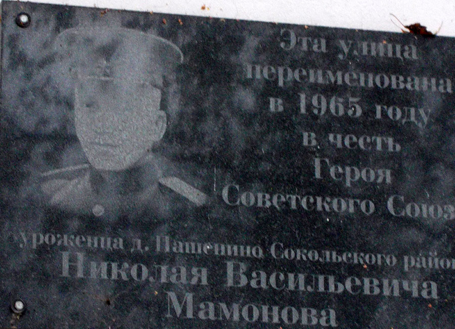 Мемориальная доска Герою Советского Союза Н. В. Мамонову, г. Сокол, ул. Мамонова