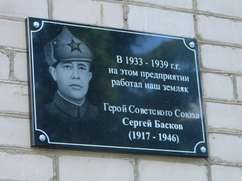 Мемориальная доска Герою Советского Союза С. П. Баскову, г. Сокол