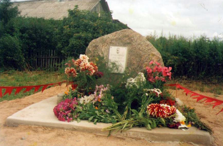 Памятный камень торжественно открыт 1 августа 2004 г. на малой родине Героя.