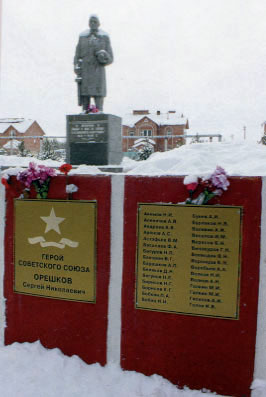 Мемориальная стела Герою Советского Союза С. Н. Орешкову, г. Кадников, улица Н. Орешкова