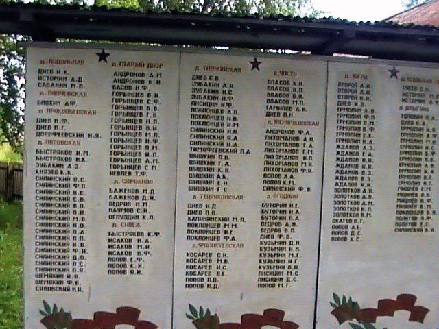 Рядом с обелиском расположены щиты с именами всех погибших земляков, из Шевдениц ушли на фронт и погибли на полях сражений – 139 человек.