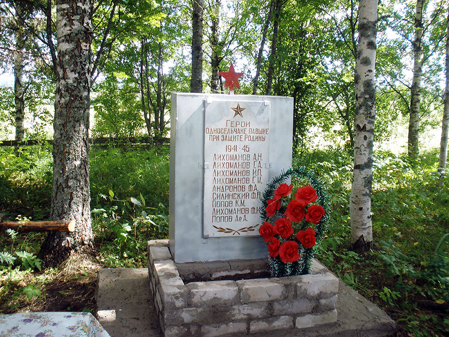 Погибли на фронтах Великой Отечественной девять человек. Это Лихомановы Александр Николаевич, Григорий Александрович, Иван Павлович, Федор Иванович и Григорий Иванович; Силинский Федор Васильевич, Андронов Фрол Алексеевич, Поповы Арсенний Алексеевич и Константин Михайлович. Двое из них еще не успели и жениться.