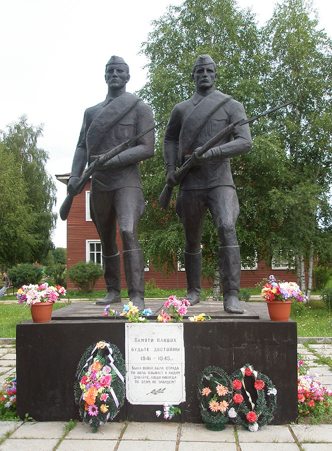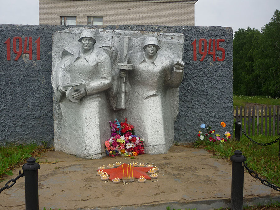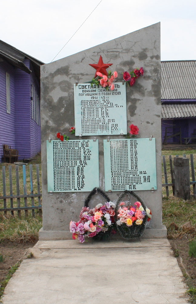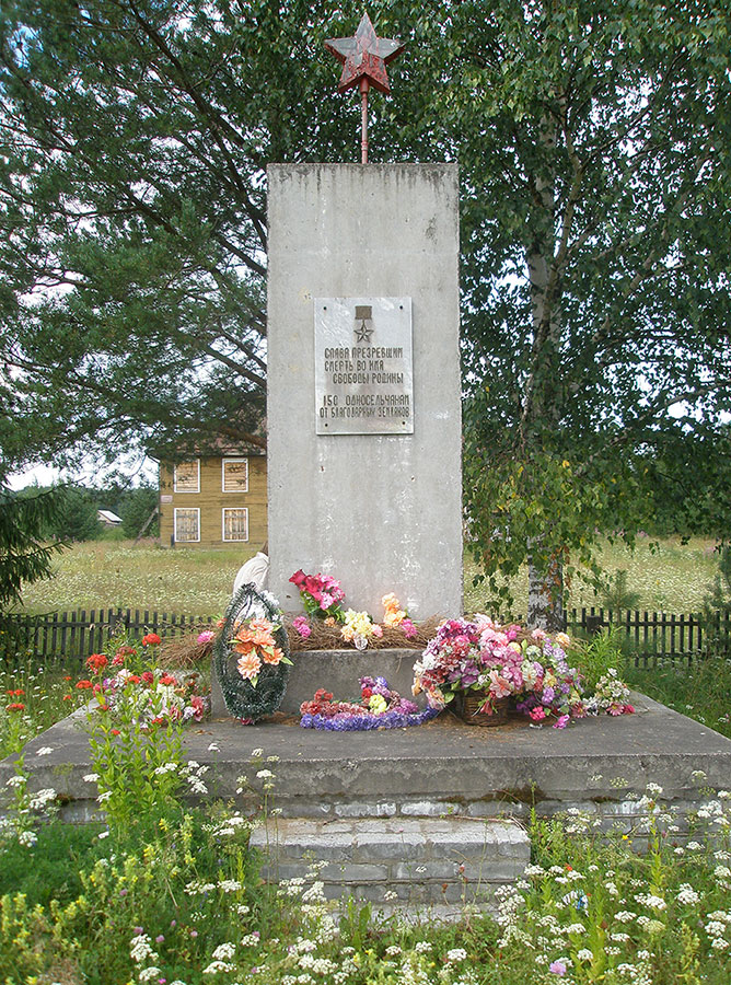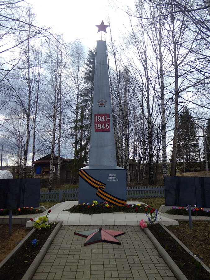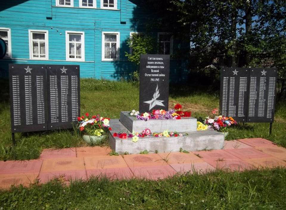 Открыт в ноябре 1975 г., расположен рядом с Воскресенской церковью. Эскиз обелиска выполнил П.А. Хомяков, учитель черчения из г. Вельска Архангельской обл. Инициатором строительства обелиска был Ф.Ф. Игнатьевский – председатель колхоза «Верховье».