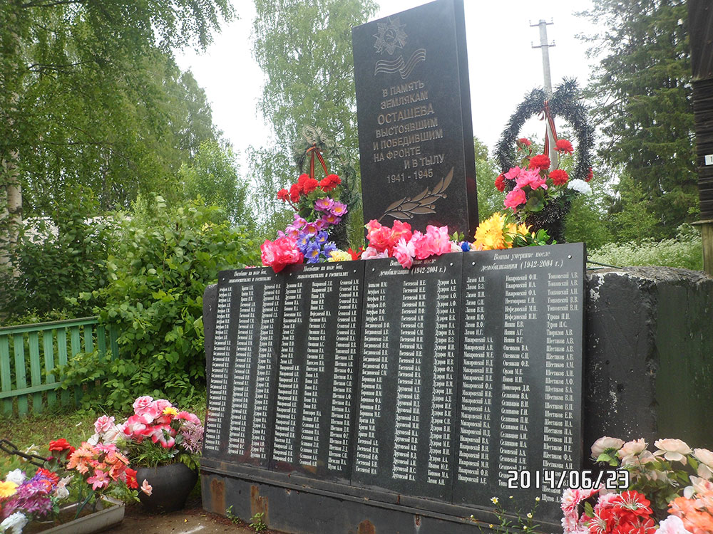 В 2010 г. к памятнику были добавлены 4 плиты с именами погибших осташевцев: погибших на поле боя, эвакогоспиталях и госпиталях и воинов, умерших после демобилизации (1942-2004 г.).