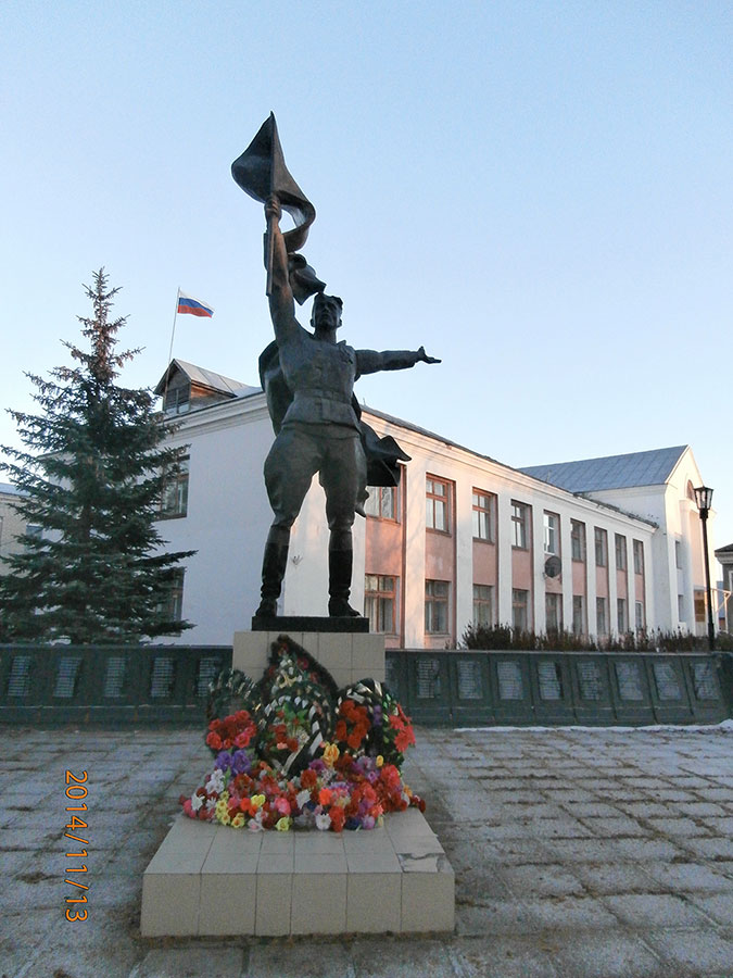 Имена 148 человек, погибших на фронтах войны, начертаны на памятной доске. Выше располагается еще одна доска с изображением воина и надписью: « Вечная память землякам, павшим за Родину в годы Великой Отечественной войны 1941-1945 г.». Завершает памятник Орден Великой Отечественной войны.