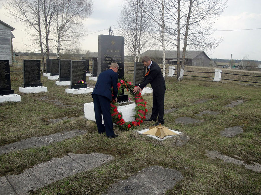 25 апреля 1985 года в поселке Вожега состоялось открытие монумента на братской могиле, где захоронено 54 бойца и командира, умершего от ран в Вожегодском госпитале. Он сооружен из кирпича, облицован штукатуркой. Стела высотой восемь метров. Памятник построен на средства администрации Вожегодского района.
