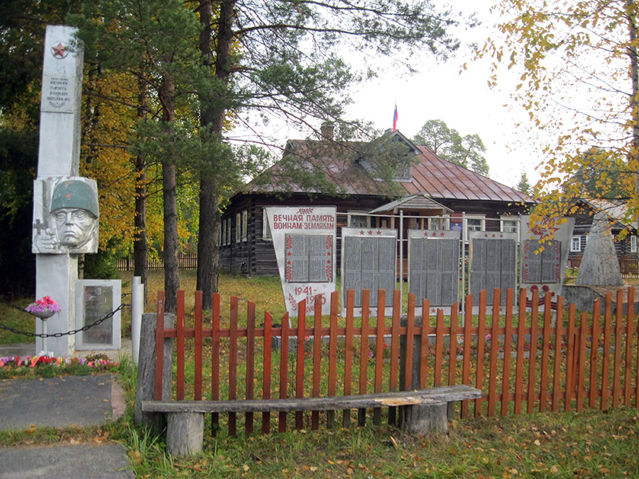 Открыт в 1975 году. Архитектор М.В. Водовозов. На гранитном постаменте установлена бронзовая фигура солдата в плащ-палатке с автоматом в руках. Справа и слева расположены по шесть гранитных плит, на которых помещена информация и фотографии девяти вожегодцев – Героев Советского Союза и трех полных кавалеров ордена Славы. Вожегодцы внесли свою страницу в суровую книгу летописи Великой Отечественной войны, 5611 уроженцев Вожегодского района остались на полях сражений.