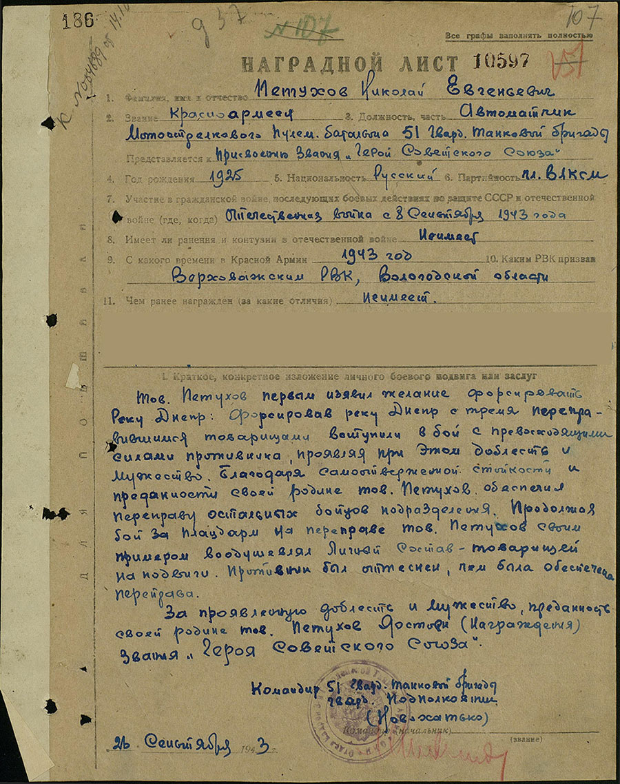 Герои Днепра : [вологжане – Василий Иванов и Николай Петухов] : листовка Политуправления 1-го Украинского фронта // В большом наступлении. – М., 1964. – На вкл. между С. 272-273.