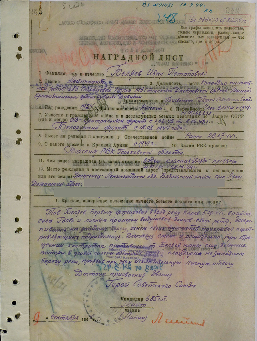 Беляев Иван Потапович : [краткая биография] // Герои Советского Союза : кр. биогр. слов. Т. 1 / редкол. : И.Н. Шкадов и др. – М., 1987. – С. 150.