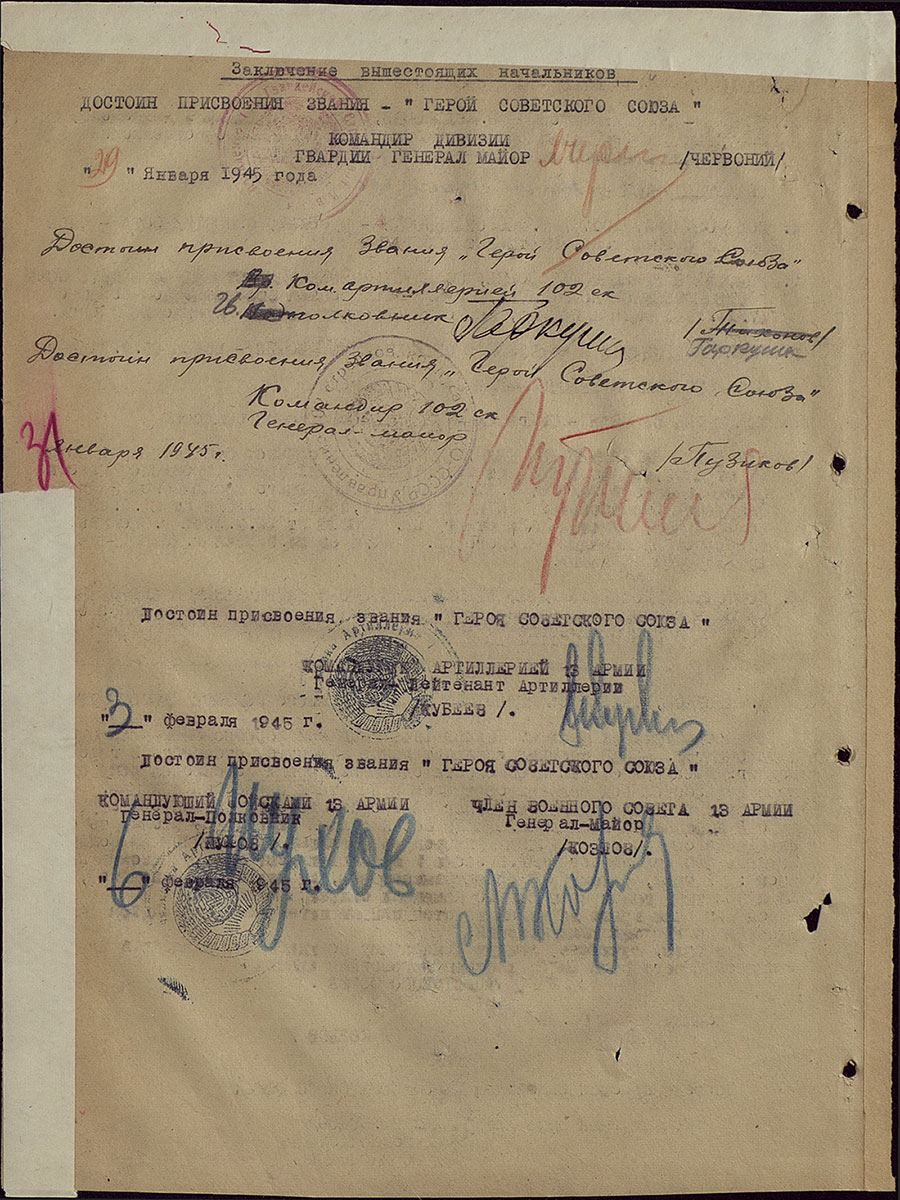 Звание Героя Советского Союза присвоено 10 апреля 1945 года