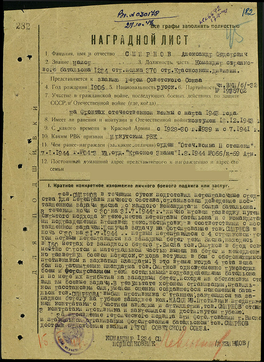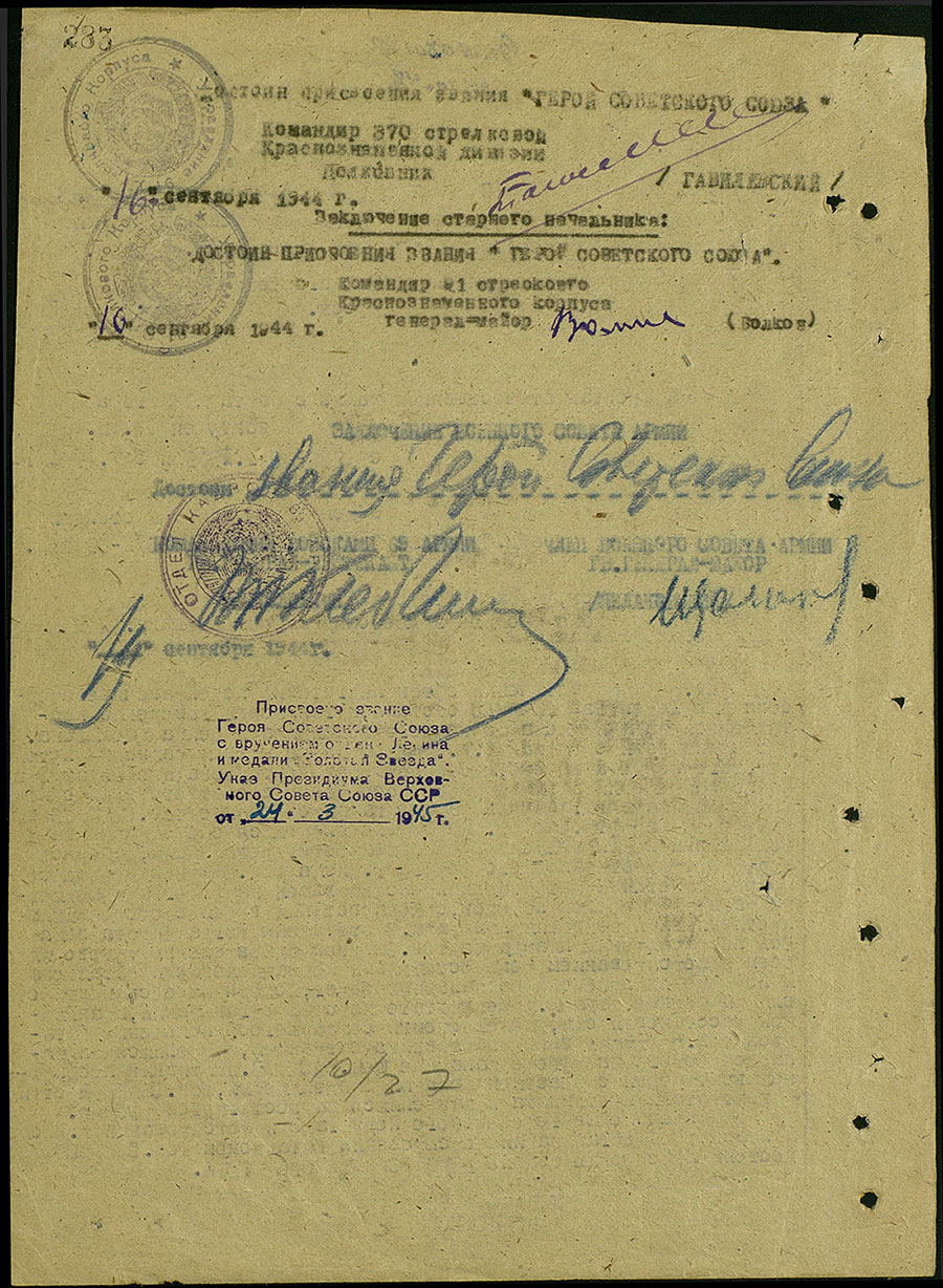 Звание Героя Советского Союза присвоено 24 марта 1945 года