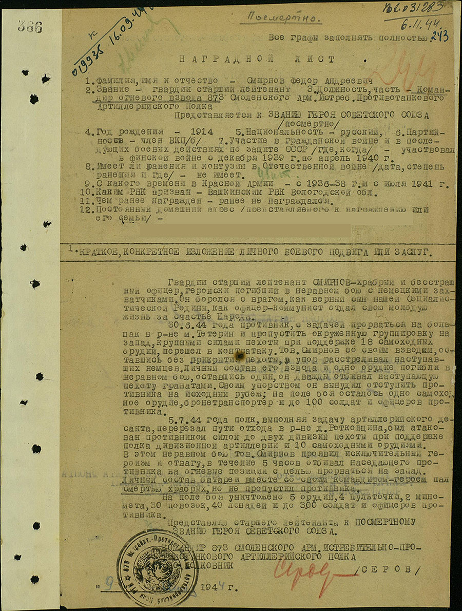 Смирнов Федор Андреевич // Герои Вологодчины : энцикл. словарь биографий. – Вологда, 2015. – С. 156.