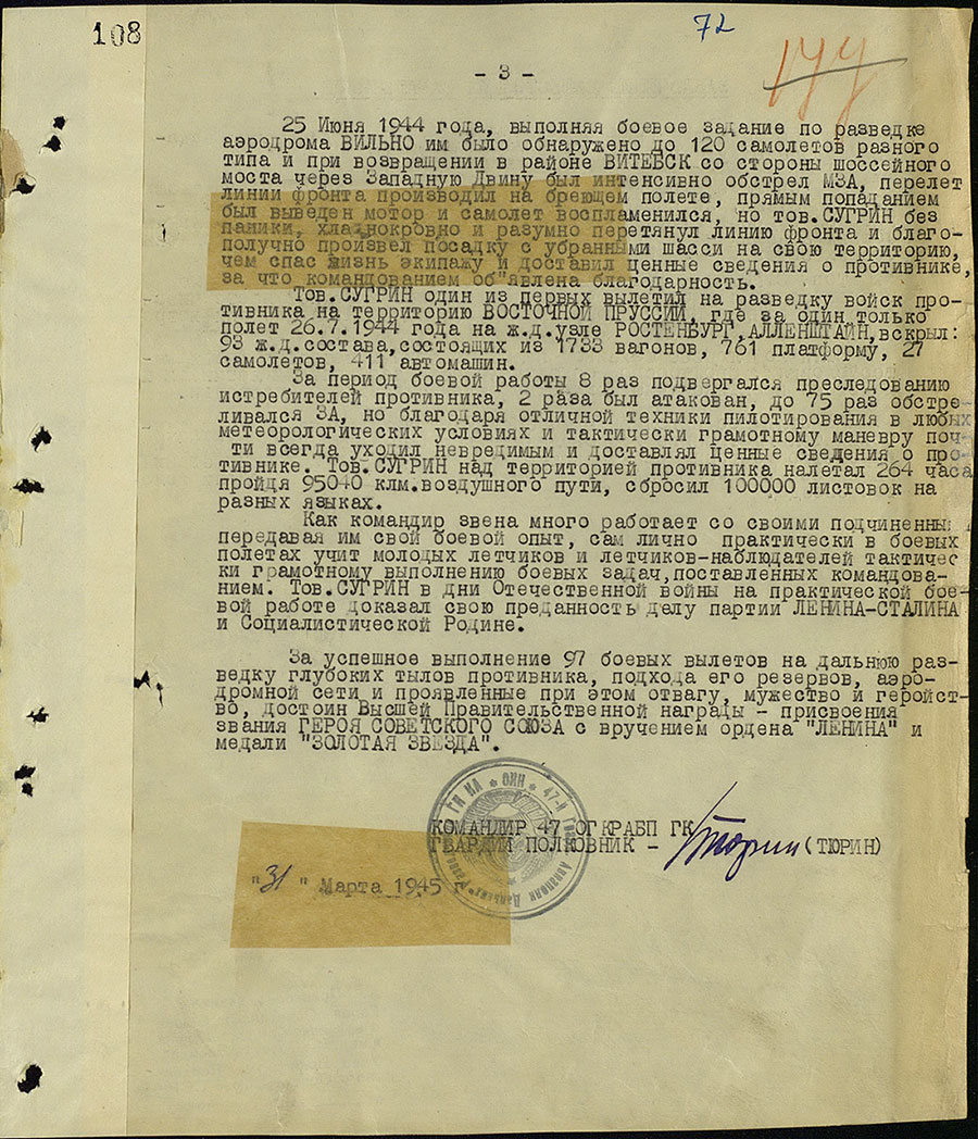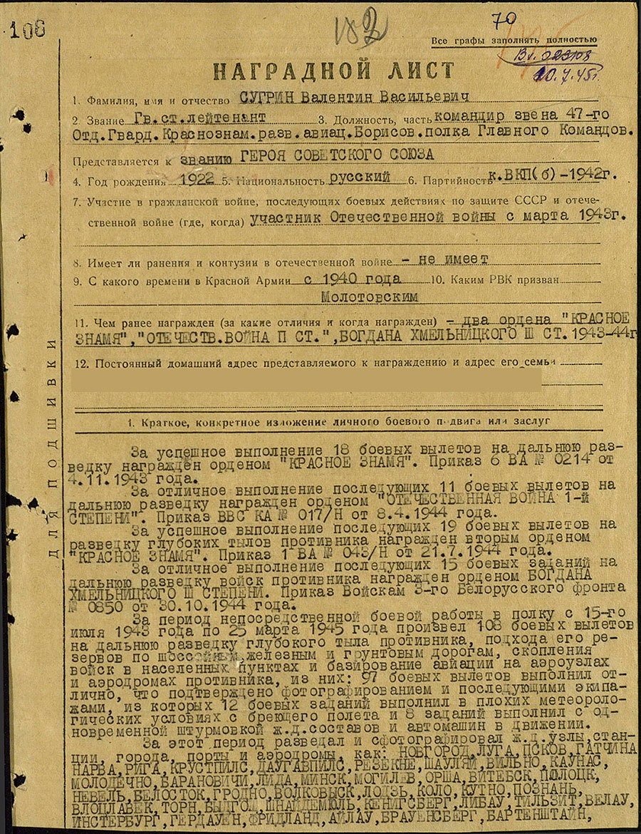 Звание Героя Советского Союза присвоено 18 августа 1945 года