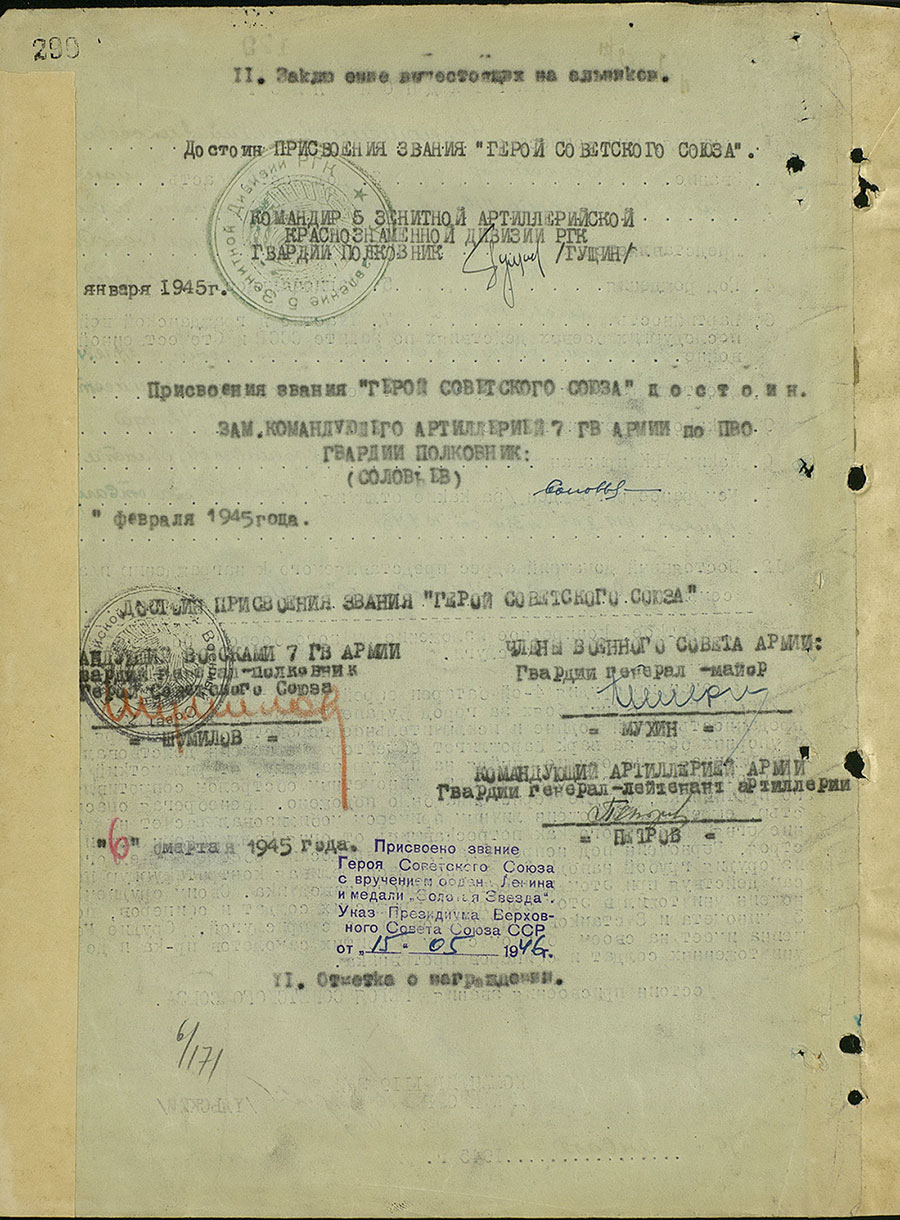 Звание Героя Советского Союза присвоено 15 мая 1946 года