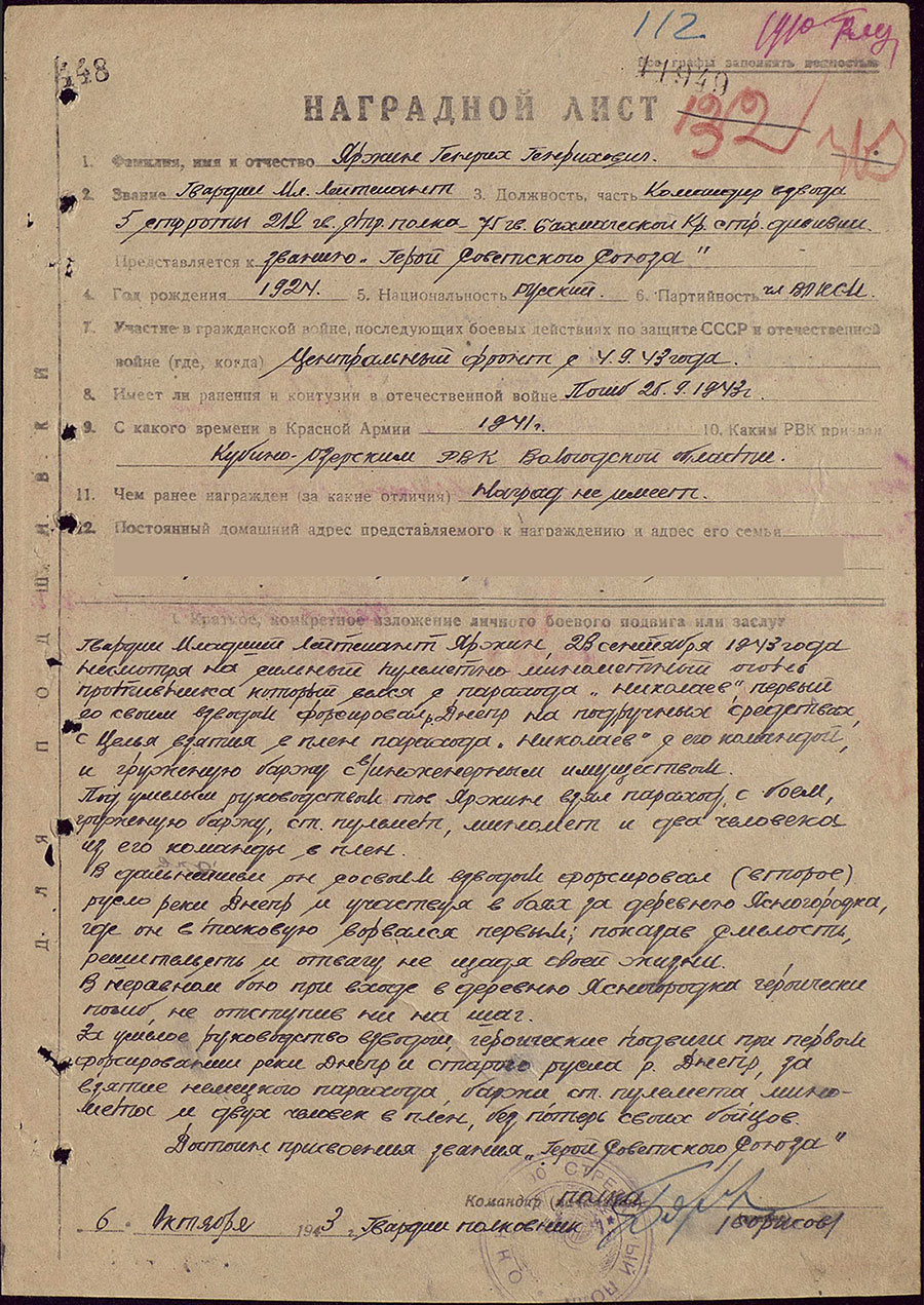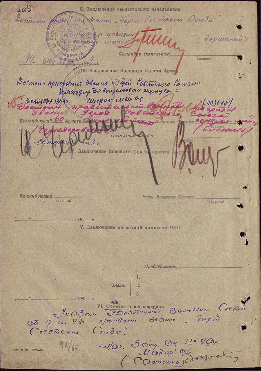 Звание Героя Советского Союза присвоено 17 октября 1943 года