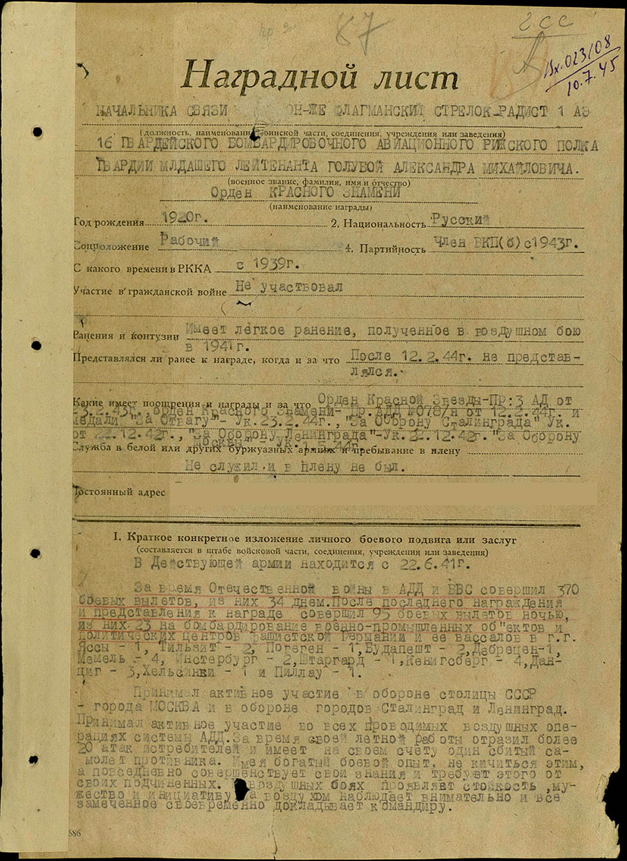 Штурман Александр Голубой // Вологжане – Герои Советского Союза : [сб. / сост. П.К. Перепеченко, Г.И. Соколов]. – Вологда, 1970. – С. 100-103.