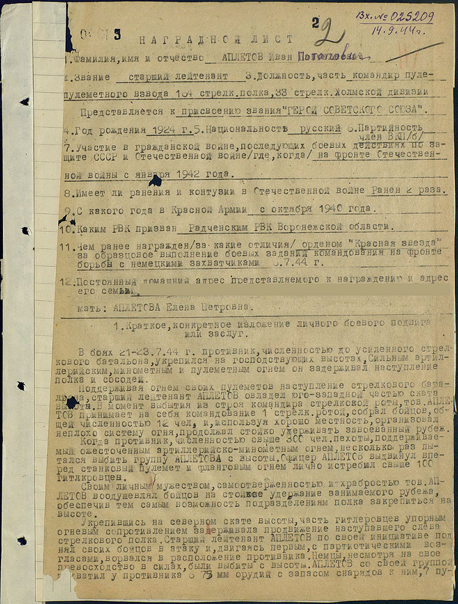 Аплетов Иван Потапович : [краткая биография] // Герои Советского Союза : кр. биогр. слов. Т. 1 / редкол. : И.Н. Шкадов и др. – М., 1987. – С. 73.