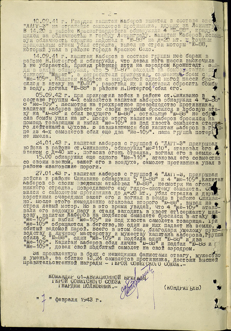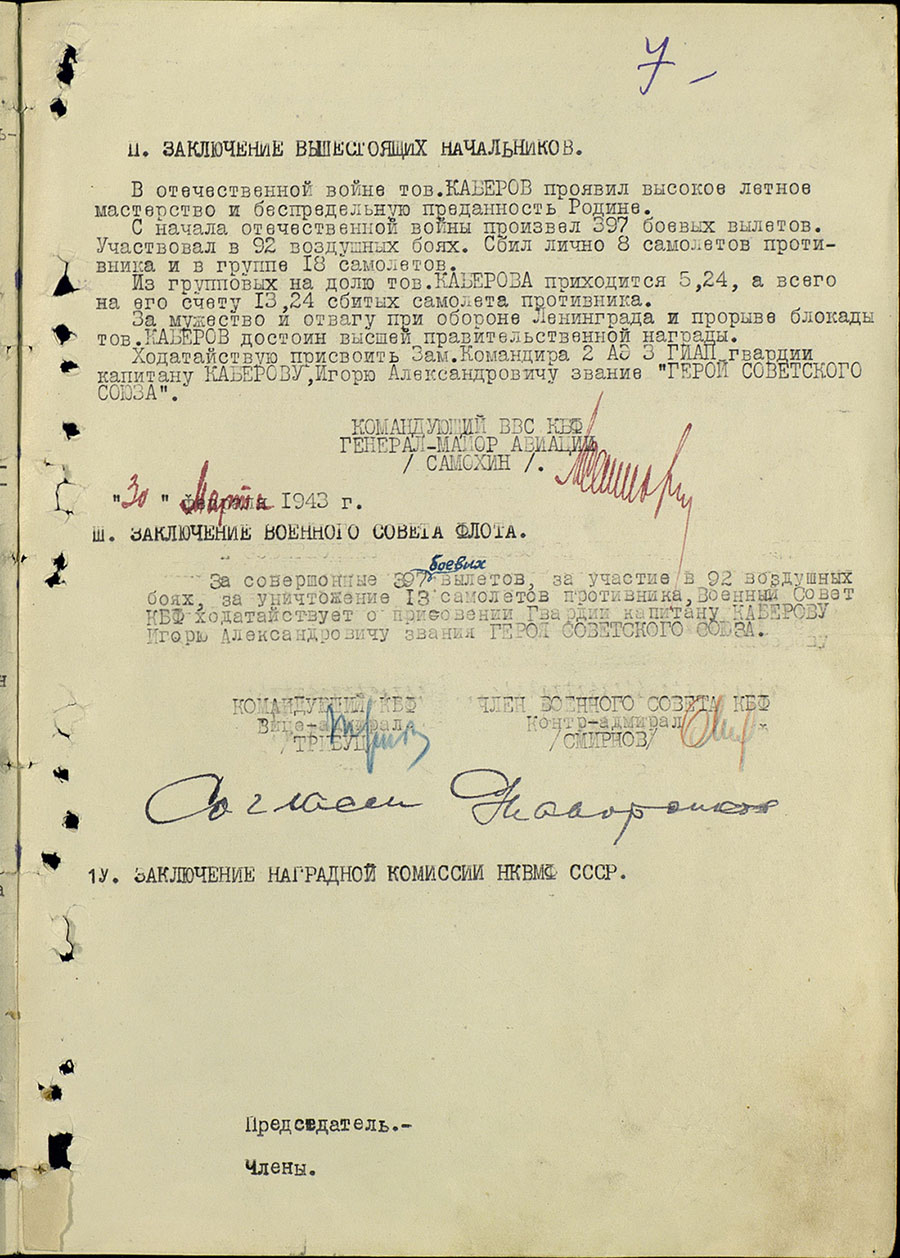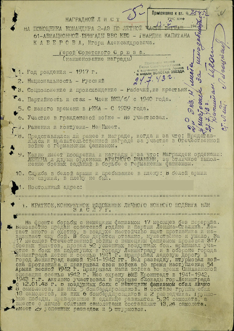 Звание Героя Советского Союза присвоено 24 июля 1943 года