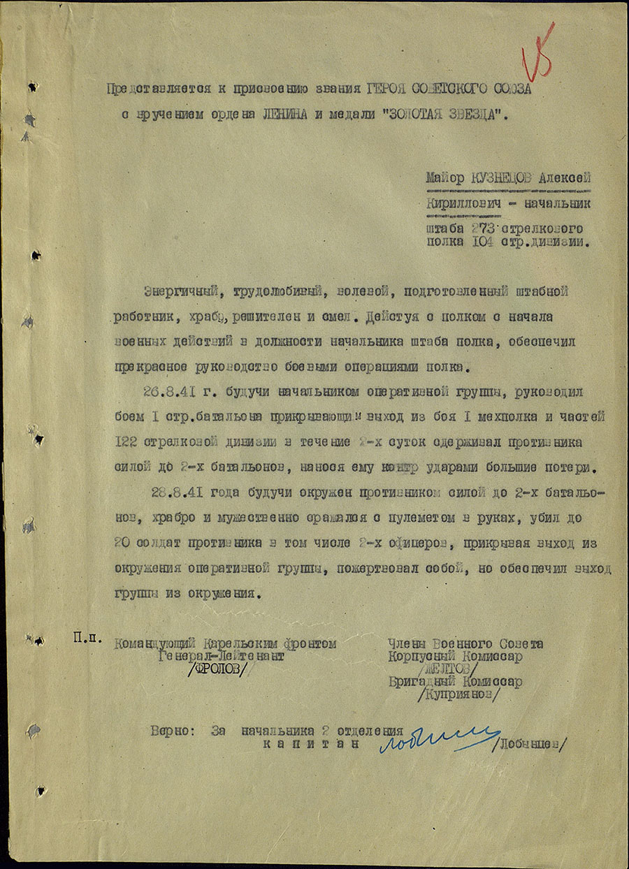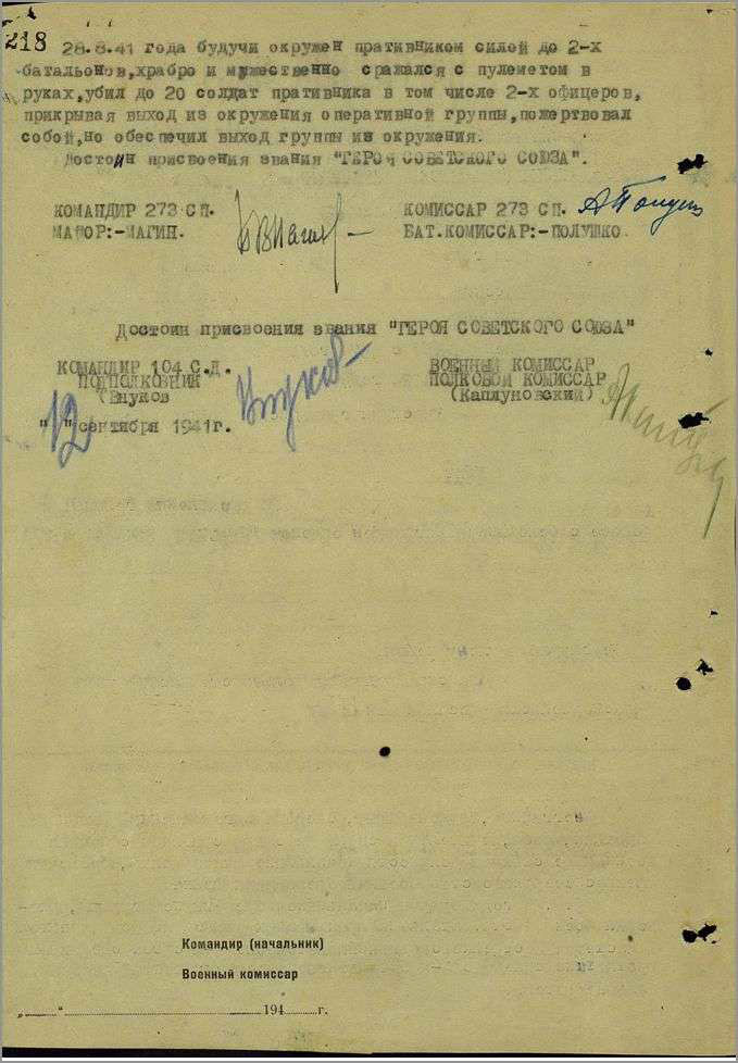 Звание Героя Советского Союза присвоено 22 февраля 1943 года