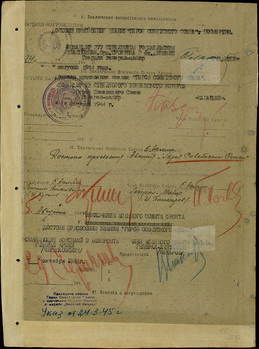 Звание Героя Советского Союза присвоено 24 марта 1945 года