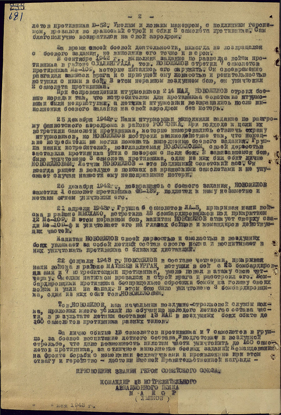 Звание Героя Советского Союза присвоено 24 августа 1943 года