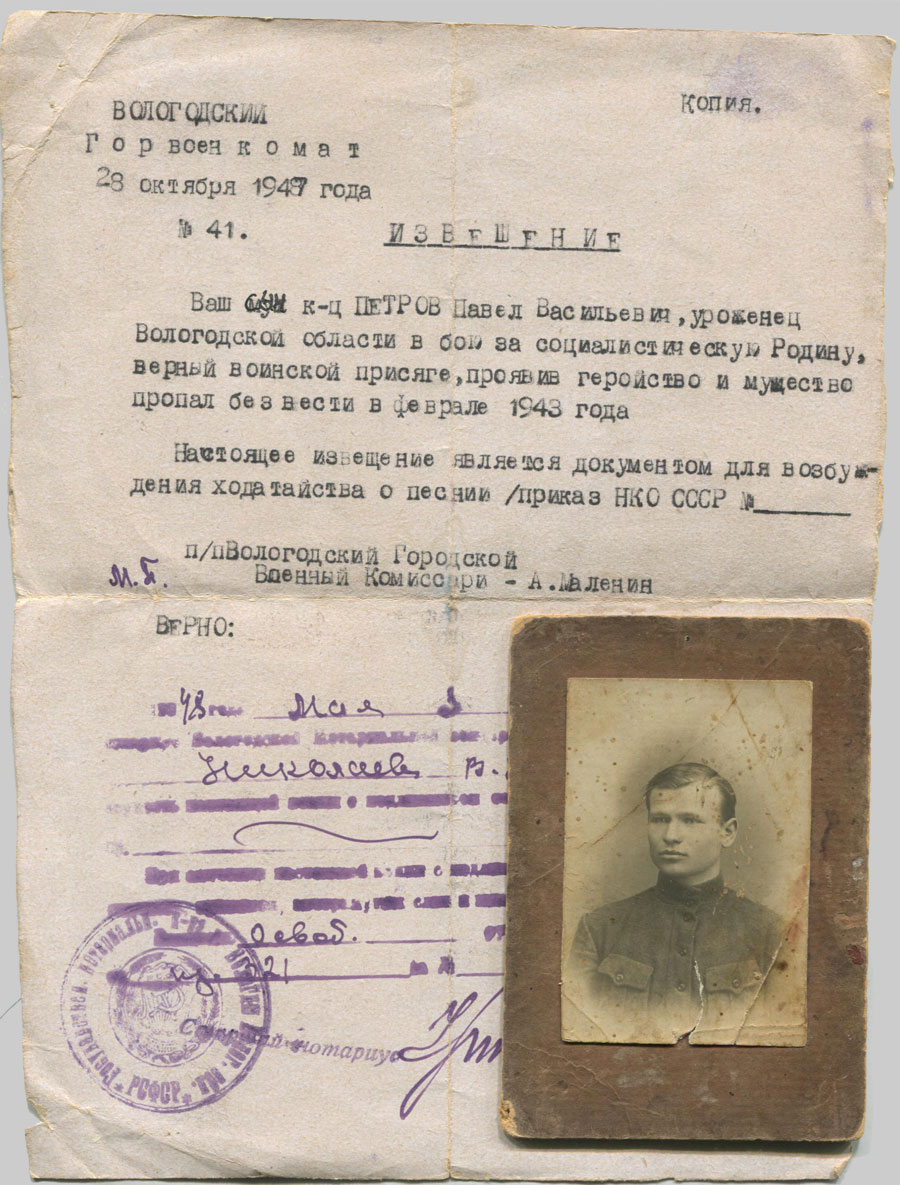 О санинструкторе П.В. Меркушине, защитнике Заполярья. Уроженец Сокольского р-на.