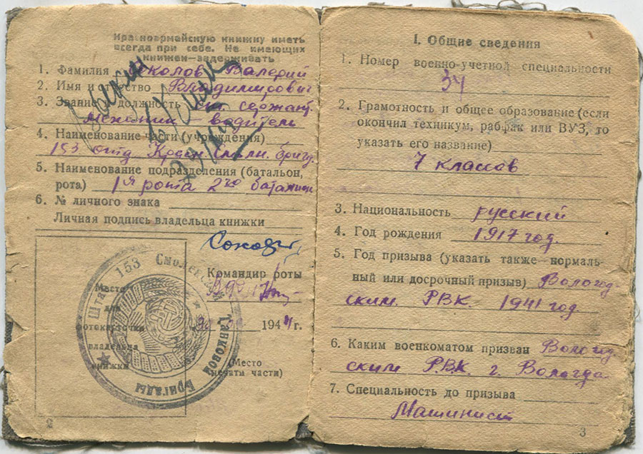 Об эпизодах боевой биографии разведчика Н.А. Ваильева. Уроженец Шекснинского района.