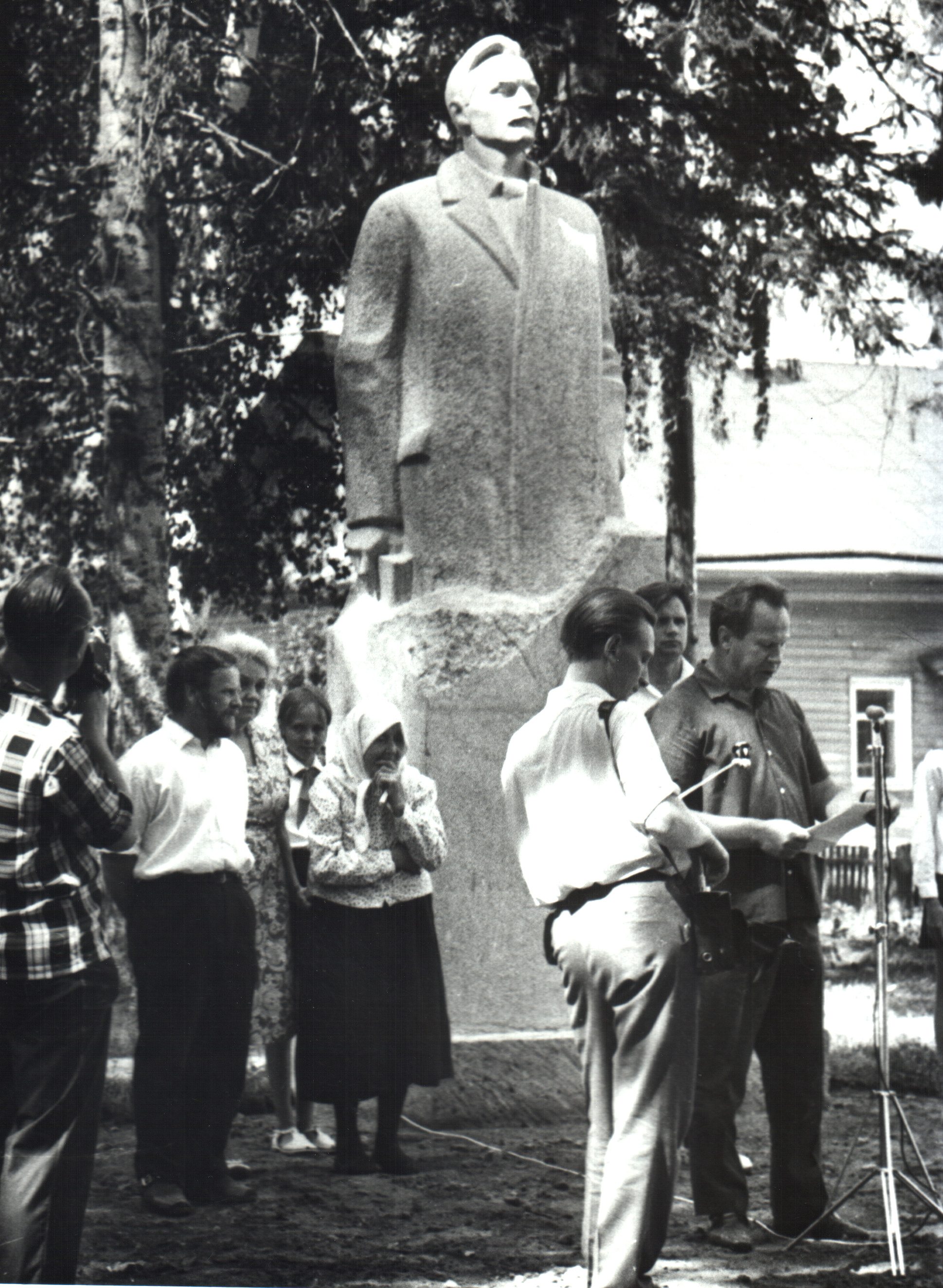 На открытии памятника А. Я. Яшину в городе Никольске. Слева стоят В. И. Белов, З. К. Яшина и Е. Г. Попова