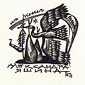 Книжный знак А. Я. Яшина «Журавль над стогами»